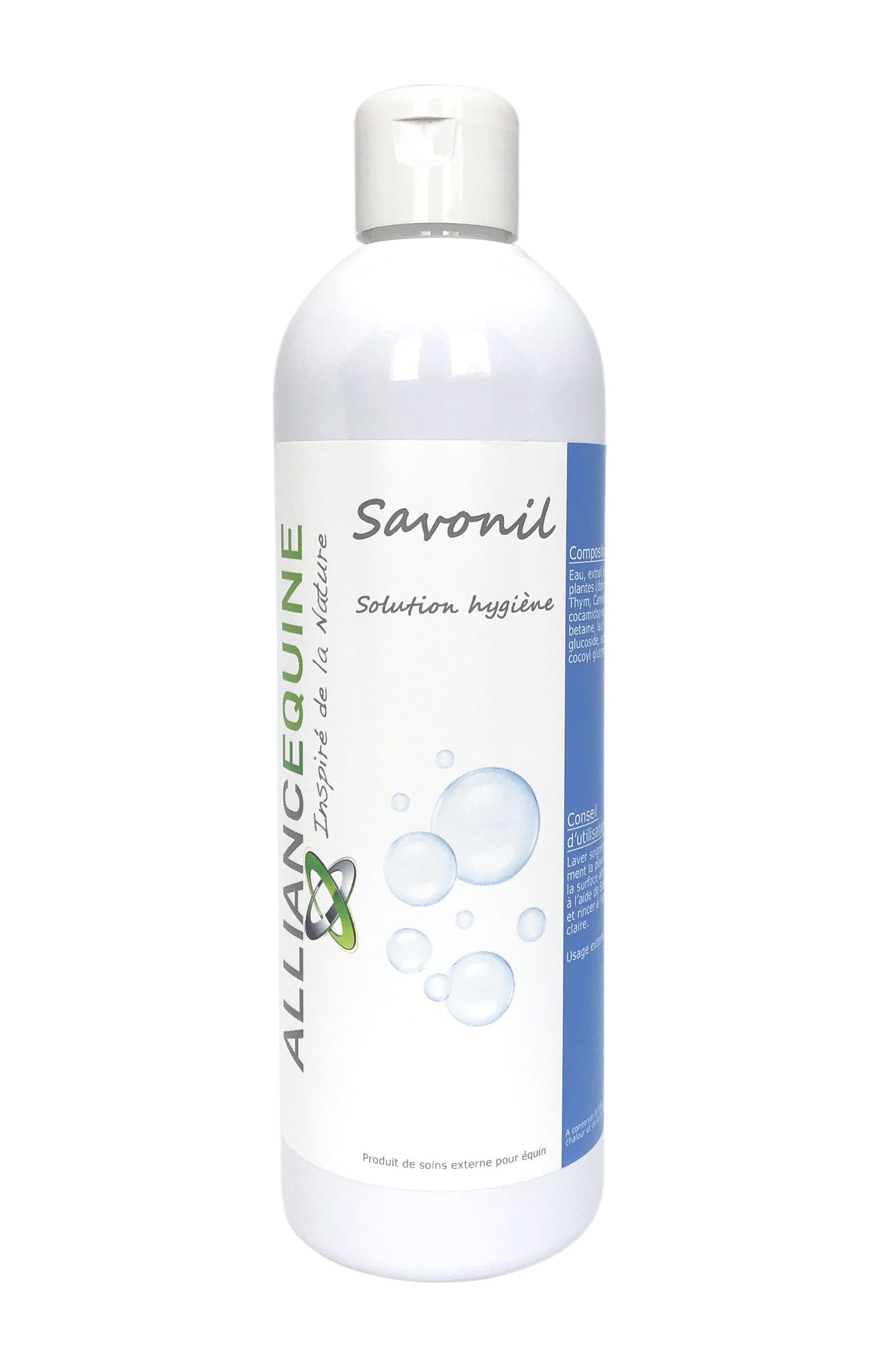 Savonil n’est pas irritant et ne tâche pas le poil du cheval